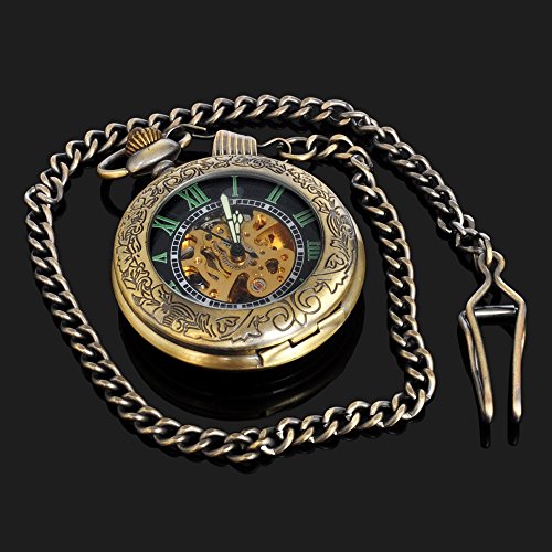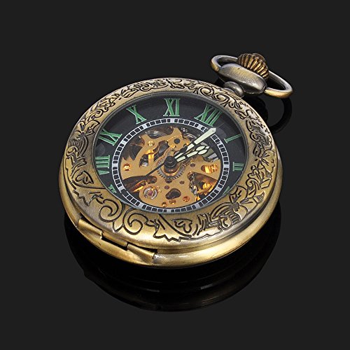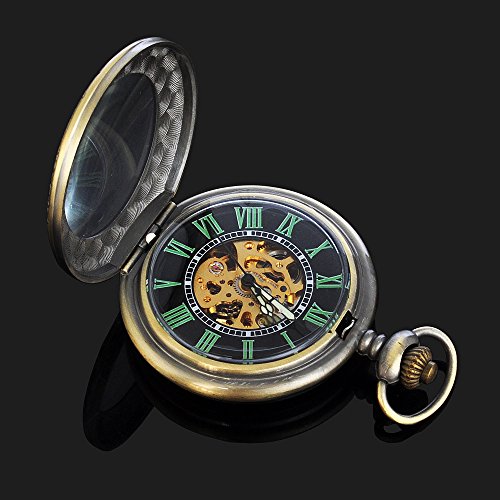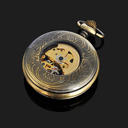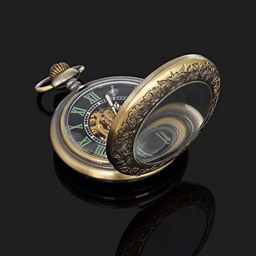 -. Title : Magnifier Glass For Mens Bronze Color Skeleton Steel Automatic Pocket Watch