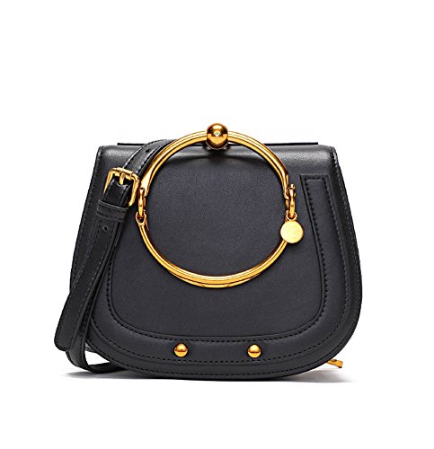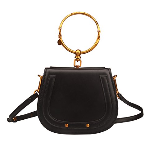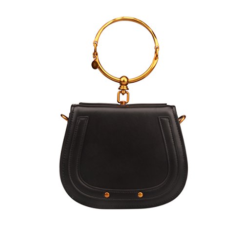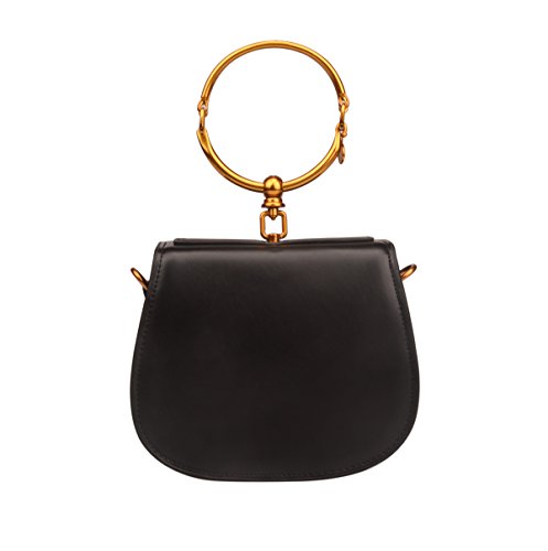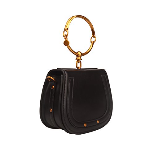 -. Brand : Ainifeel -. Color : Black -. Department : womens -. Feature : Split cow leather material. Synthetic lining / Metal Handle. One pocket in the interior. Attached an adjustable shoulder or crossbody strap / 9.5'' (L) X 3.5'' (W) X 8.25'' (H) / Please note the hardware in BRONZE-GOLD ( some customers call ORANGE), see color of hardware on images / Please kindly do not order the handbag if you do not like BRONZE-GOLD (ORANGE) hardware -. ProductGroup : Shoes -. ProductTypeName : HANDBAG -. Size : Small -. Title : Ainifeel Women's Leather Handbags With Bracelet Handle On Clearance
