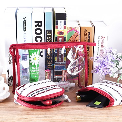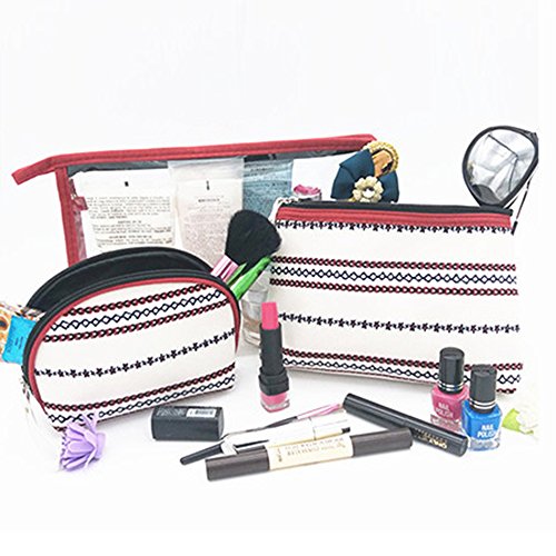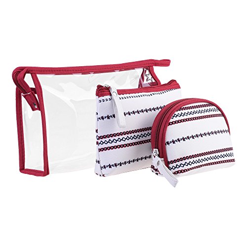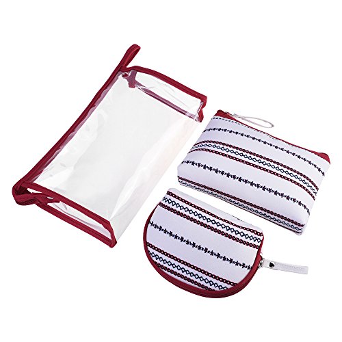 BCP set of 3 pcs PVC & Fabric Cosmetic Travel Makeup Bag Pouch Case Holder Organizer Purse Pouch Bag (White & Red)