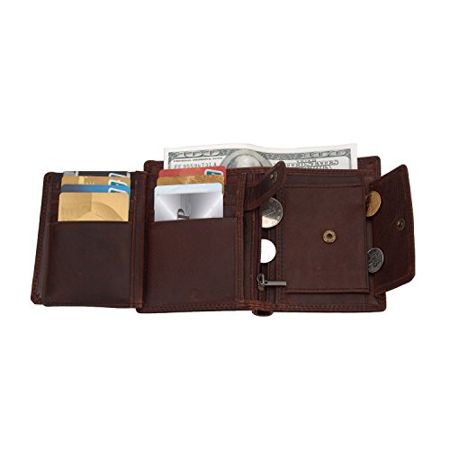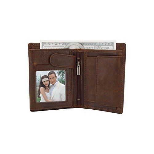 -. Title : Genuine Leather Trifold Zippered Wallets For Men With Cion Pocket Cowhide Leather Slim Purse For Cash Bills Multi Card Extra Capacity Travel Wallet Stylish Gift