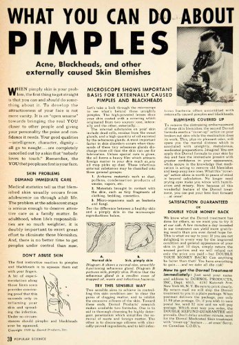 -. Brand : PeriodPaper LLC-Collectible Original P.R.Int Archive -. Feature : Product Type: Original P.R.Int Ad; Black / White / Grade: Very Fine +++ / Dimensions: Approximately 6 x 8.5 inches; 15 x 22 cm / Authentication: Serial-Numbered Certificate of Authenticity w/ Full Provenance / Packaged in custom sleeve w/ archival black board (great for display, gift-giving, and preservation) -. Genre : History -. IsAdultProduct : 0 -. IsAutographed : 0 -. Label : Authenticated -. Manufacturer : Authenticated -. PackageQuantity : 1 -. ProductGroup : Entertainment Memorabilia -. ProductTypeName : ENTERTAINMENT_MEMORABILIA -. Publisher : Authenticated -. Studio : Authenticated -. Title : 1950 Ad Dornol 4357 Katonah Ave Pimples Acne Skin Care Hygiene Medicated Remedy - Original P.R.Int Ad