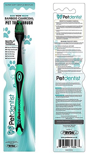 -. Binding : Misc. -. Brand : Petdentist -. EAN : 0646437743563 -. Feature : BAMBOO CHARCOAL toothbrush pulls plaque away naturally unlike other bristles which scrape teeth and gums especially when used with a dog toothpaste enzymatic formula / ACTIVATED CHARCOAL absorbs food acid-causing stains that are deeply embedded in your pet's teeth providing effective dog teeth cleaning and whitening / PROTECTS GUMS WITH SUPER SOFT ROUNDED GENTLE BRISTLES compared to other dog tooth brush perfect to use as a puppy toothbrush / CHARCOAL KILLS HARMFUL BACTERIA AND GERMS in the mouth and on the toothbrush between brushing as it is a natural toothbrush sanitizer by disinfecting and deodorizing / BAMBOO CHARCOAL NATURALLY FRESHENS BREATH for fresher kisses. Ideally dog toothbrush and toothpaste should be used together for best results -. Label : Petdentist -. Manufacturer : Petdentist -. Model : PDTB1 -. MPN : PDBWMBCTB1 -. NumberOfItems : 1 -. PackageQuantity : 1 -. PartNumber : PDBWMBCTB1 -. ProductGroup : Pet Products -. ProductTypeName : PET_SUPPLIES -. Publisher : Petdentist -. Studio : Petdentist -. Title : Pet Dentist - Bamboo Charcoal Pet Toothbrush for Dogs and Cats – Extra Soft Bristles, Dental Care for Small, Medium, Large Breed Dogs -. UPC : 646437743563