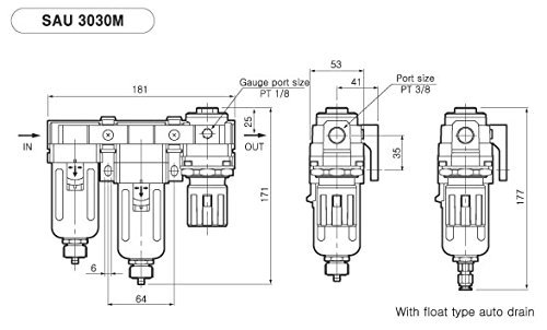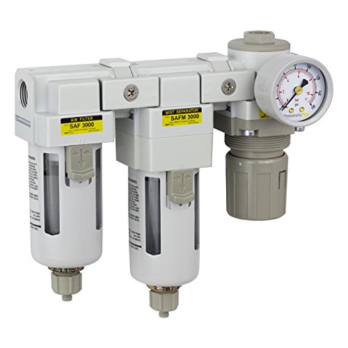 PneumaticPlus SAU3030M-N03G Three Stage Air Drying System - Air Particulate Filter, 0.3 Micron Coalescing Filter & Air Pressure Regulator Modular Combo 3/8" NPT - Manual Drain, Poly Bowl