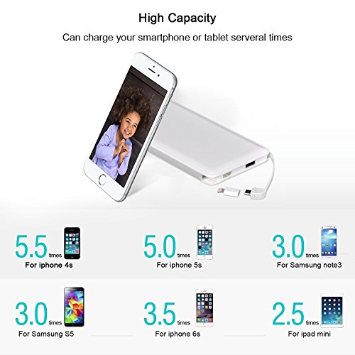 -. Binding : Wireless Phone Accessory -. Brand : Bestoss -. Color : white -. EAN : 0190073248055 -. Feature : POWERHOUSE FOR YOUR DEVICE - Even the best smartphones in the world run out of battery pretty quickly, and leave you alone when you need them most. However, this 10000mAh power bank will prove to be a Bestoss for a draining battery. This monstrous powerhouse allows you to charge your phone up to 5 times, meaning even on the longest journeys you can easily manage before you reach a charging station. / ULTRA SLIM AND SLEEK - Despite being packed with such power, it has a slim and sleek design which makes it easy to carry anywhere you go. This design ensures that it can be easily slipped into your backpack or office bag. And, guess what? You get all this features at a very pocket-friendly price. You bet, it would be one of the best companions you would like to be with always. / BUITE-IN CHARGING CABLE - Built-in Lightning & Micro Cable For Both Apple and Android Devices, Universal Fits For iPhone 6 5S/5/4S/4, iPad, iPod, Samsung devices, HTC phones, tablet PCs, digital cameras, game consoles and MP3/MP4 players, etc / SUPERIOR QUALITY - The Bestoss portable charger has a superior finish and is made up of high-quality components to ensure that it is durable and remains effective over a longer duration. Even though the power bank is slim, it has a sturdy build and can easily survive the everyday wear and tear. Moreover, it can be easily and speedily charged through the provided micro USB port. / RISK-FREE SATISFACTION GUARANTEE - We offer you risk-free satisfaction guarantee to let you buy with confidence; no questions asked. However, we are quite confident that you will love the power of it and will always be glad to have made the decision of buying it. -. Label : Bestoss -. Manufacturer : Bestoss -. Model : BTPB-20160520AA01 -. PackageQuantity : 1 -. ProductGroup : Wireless -. ProductTypeName : WIRELESS_ACCESSORY -. Publisher : Bestoss -. Studio : Bestoss -. Title : Bestoss Power Bank, 10000mAh Slim Portable USB External Battery Charger Built-in Lightning & Micro USB Cable and Extra USB Port output Portable Charger Power Bank for USB-Charged Smart Phone Devices -. UPC : 190073248055