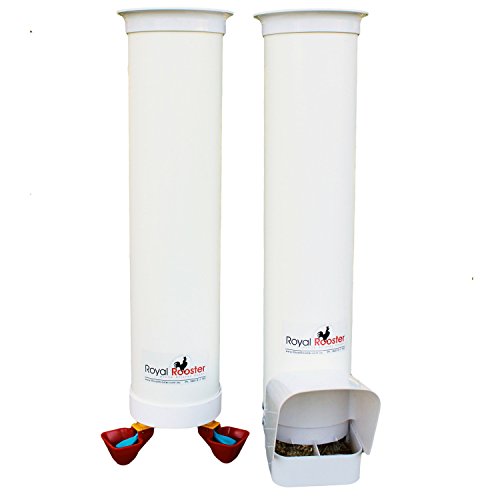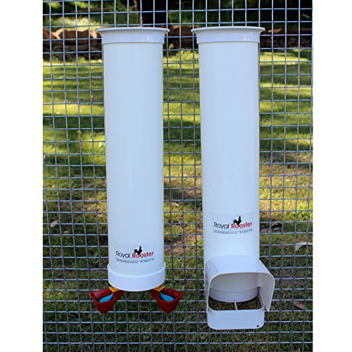 Royal Rooster Duck Feeder with Rain Cover and Twin Valve-Cup Waterer Set – 6.5lbs / 1 gal.