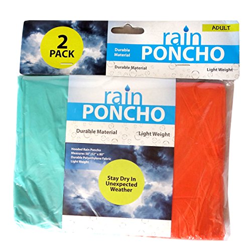 -. Title : Waterproof Rain Poncho - Hooded - Assorted Colors - Polyethylene Plastic - Durable and Long Lasting - Lightweight and Portable - Fits Adults and Kids - Reusable - 2 Pack - By Qornerstone