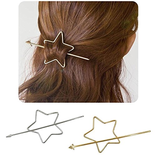 -. Title : 2個セット マジェステ フェザー ヘアアクセサリー かんざし ヘアアレンジ ポニーテール 結婚式 シンプル アクセサリー プレゼント シンプルリング マジェステ ハーフアップホルダー ゴールド ヘアスティック (E.五角星タイプ)