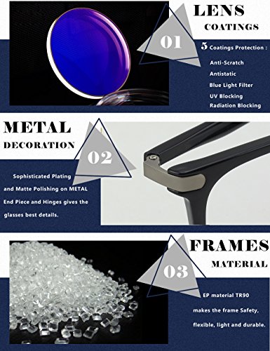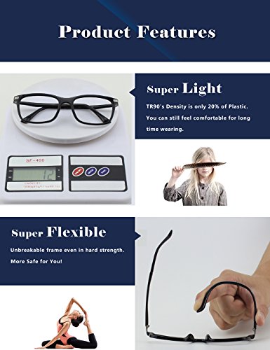 HIGH TECH MATERIAL: TR90 makes the frame super lightweight , flexible and durable .This high technology material TR90's density is 80% less than Plastic and 50% less than Acetate, it can be hardly feel when it stays on your face.