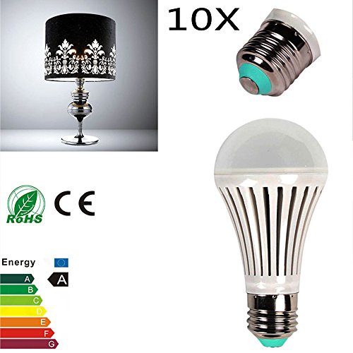 A pack of 10 x 7W LED bulbs, as bright as traditional incandescent 60W bulb, but consuming only 20% of energy