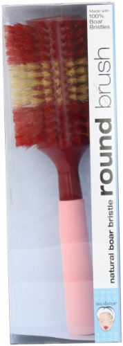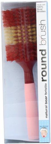 Bath Accessories Hair Brush Natural Boar 3.5 Inch Round Stripe, Pink/Red