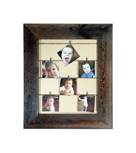 -. Title : Reclaimed Rustic Barnwood Twine Collage Photo Frame - 12 Mini Clothes Pins Included