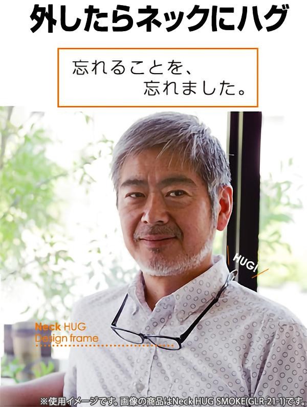 | 使用後はハグするように首にかけておけるリーディンググラス。 |