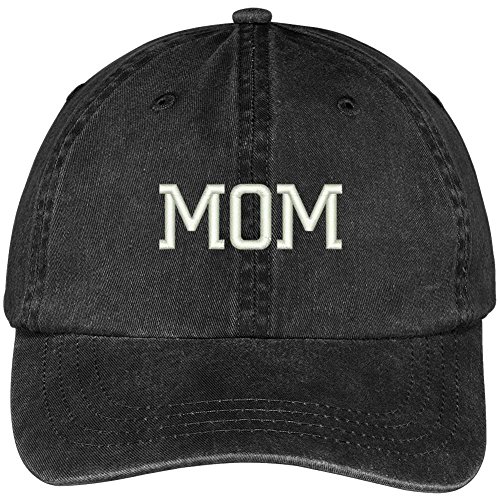 Title : Mom Embroidered Pigment Dyed Low Profile Cotton Cap - Black