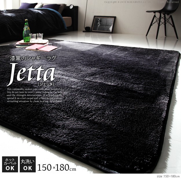 漆黒のシャギー ラグ ジェッタ 150x180cm 洗える 長方形