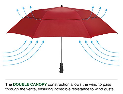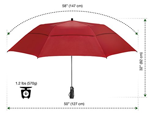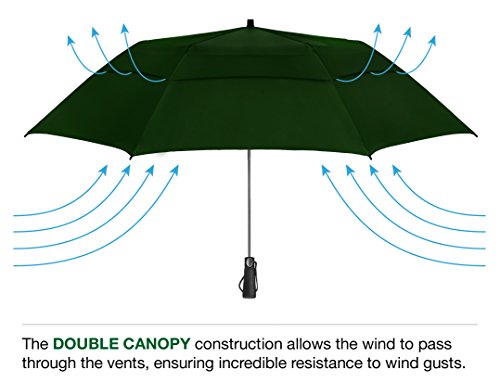 -. Binding : Misc. -. Brand : EEZ-Y -. Feature : INNOVATIVE WIND RESISTANT DOUBLE CANOPY - Tired of the wind rolling around the canopy and forcing the edges of your umbrella up, flipping or inverting it entirely? So are we. The EEZ-Y 58" Metro Umbrella with its vented DOUBLE CANOPY construction allows the wind to pass through the vents preventing it from flipping over / OVERSIZED CANOPY - Keeps you safely dry. You and not only you, as the Large 50" (127cm) Diameter Canopy easily provides outstanding protection for two persons. The 210T specially coated water repellent fabric and ergonomic EVA handle make it outperform any competition / PORTABLE AND LIGHTWEIGHT - Correct! This excellent Metro umbrella doesn't sacrifice portability to protection. Foldable to merely 23" (59 cm) it's way smaller and lighter (only 1.2 lb / 570g) than other umbrellas with similar sized canopy. We thought you might like to have it at hand in your car, use it around the city or when attending outdoor events / STRONG BUILD AND INTUITIVE USE - Simply OPEN the umbrella with a press of a button within one second. Its Auto OPEN feature gives you quick rain and sun protection. Moreover, our Premium Fiberglass and Stainless Steel Frame System cries out NO rust, NO breaking / LIFETIME GUARANTEE - We cannot fight the acts of God, rain included, but we do our best to save our customers from wasted time and stress! That's why we offer a LIFETIME GUARANTEE. For the first 90 days we offer a full refund if it doesn't meet your expectations, and a replacement warranty for the lifetime of your purchase! That's the EEZ-Y way -. IsAutographed : 0 -. IsMemorabilia : 0 -. Label : EEZ-Y -. Manufacturer : EEZ-Y -. ProductGroup : Sports -. ProductTypeName : SPORTING_GOODS -. Publisher : EEZ-Y -. Studio : EEZ-Y -. Title : EEZ-Y Folding Golf Umbrella 58-inch Large Windproof Double Canopy - Auto Open, Sturdy and Portable