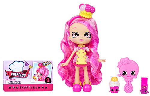 Don’t stir up trouble! There are no recipes for disaster in Bubbleisha’s Cook Book! She’ll help make it yummy without being too gummy! Pop on an apron in case there are any sticky situations and join the Chef Club It’s where all the best Chefs shop! Bubbleisha comes with her own brush to style her hair, 2 exclusive Shopkins Besties, an apron and a coded Shoppies Credit Card! So come and Join the Club. It's where all the best chefs shop!Feature