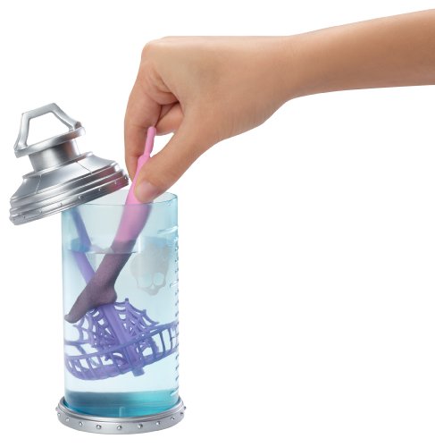 Ghouls can customize and personalize their very own monster doll from fang to toe. This ultimate monsterization station has all the clawesome tools needed to add detail to the monster’s hair, fashions, and skin. With spooktacular color-change technology, the Color Me Creepy Design Chamber lets ghouls try endless design combinations and create the most unique monster ever. Start by picking a monster part and placing it in the tumbler with ice-cold water for a dramatic all-over transformation (or use warm water to erase previous designs). After a quick soak in the tumbler, your creation can be placed in the drying station while you soak another piece.