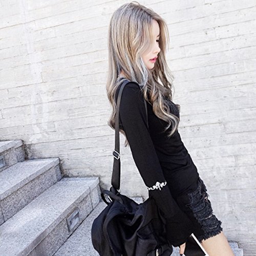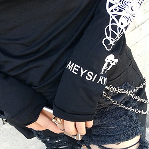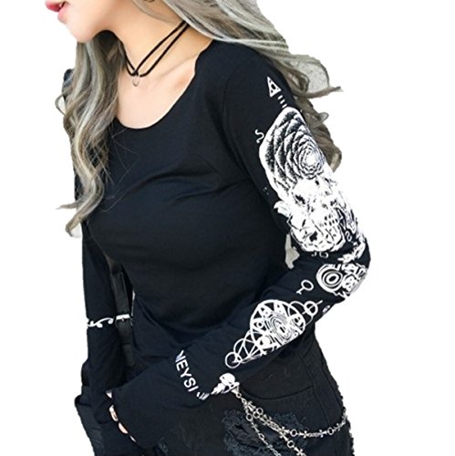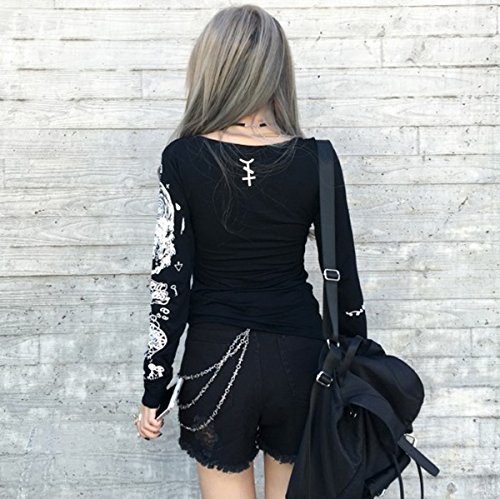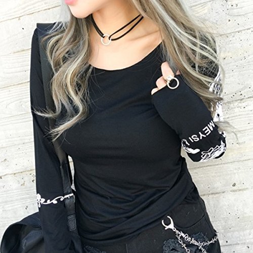 -. Title : Y-MTY (ワイエムティーワイ) 個性派 レディース 長袖 カットソー ララウンドネック (ブラック) 柄 tシャツ Fトップス 黒 原宿系 ゴスロリ ロリータ 甘ロリ ガールズ おしゃれ 可愛い 少女 女性 ゴシック パンク