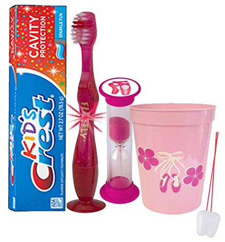 -. Feature : Turn something your kids have to do into something they want to do...Because when brushing is fun, it gets done! / (1) Firefly Youth Flashing Lights Suction Cup Toothbrush (Assorted Colors) (1) Kids Crest Cavity Protection Sparkle Fun Toothpaste, 2.7 oz / (1) Ballet Themed 16oz Plastic Mouthwash Rinse Cup, Doubles As Toothbrush Holder! / (1) Dentist Recommended 2 Minute Ballet Themed Brushing Timer (Assorted Styles) / Plus Bonus "Remember to Brush" Visual Aid Tooth Saver Necklace. Hang it in their bathroom or by their bed so they remember to keep their chompers sparkly fresh. You could also use these tooth charms to save one of your child's baby teeth.