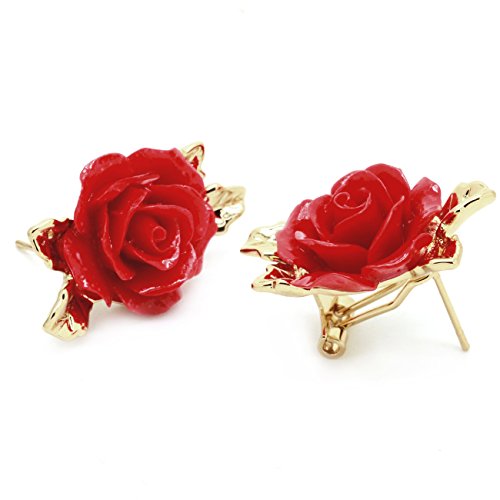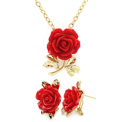 -. Binding : Jewelry -. Brand : Sparkly Bride -. Department : womens -. Feature : Earrings measures about 1" Long and 0.62" wide. Pendant is about 1" Long and 1" wide. / Base metal alloy / Red Resin Rose Flower / Gold Plated / Earrings are omega post style for pierced ears. Pendant comes with 18"+1" extender chain. -. Label : Sparkly Bride -. Manufacturer : Sparkly Bride -. Model : YZ-SET1776G-OM -. MPN : YZ-SET1776G-OM -. PartNumber : YZ-SET1776G-OM -. ProductGroup : Jewelry -. ProductTypeName : FASHIONOTHER -. Publisher : Sparkly Bride -. Studio : Sparkly Bride -. Title : Sparkly Bride Gold Plated Resin Red Rose Flower Leaves Pendant Necklace Omega Earrings Jewelry Set