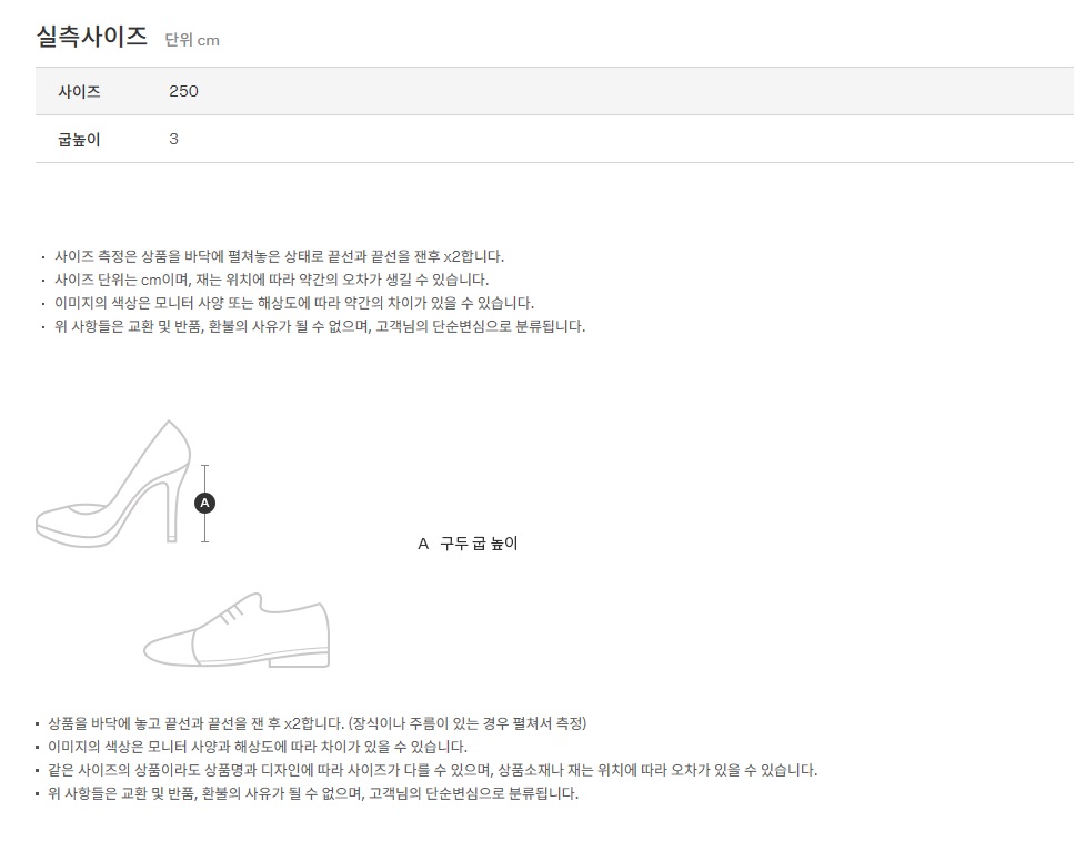 - 250기준/굽높이(Heel Height): 3cm.