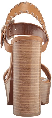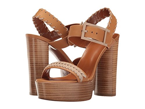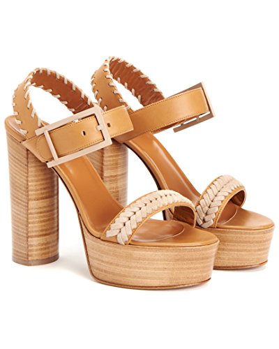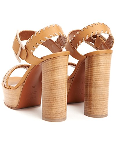 Product DescriptionSmooth leather ankle-strap sandal with whipstitch detail on a platform stacked leather heel.0