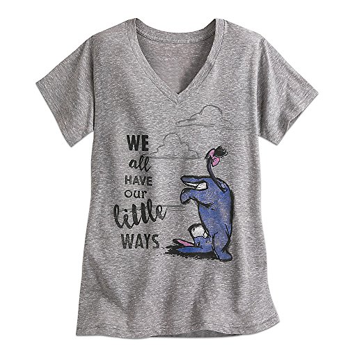 Genuine, Original, Authentic Disney Store Distressed Eeyore screen art for vintage styling Soft, sheer, slubbed jersey knit Ribbed v-neck Brand : Disney Item model num : 456204120622 Package Dimensions(LxWxH) : 30x28x3cm ; 204 g