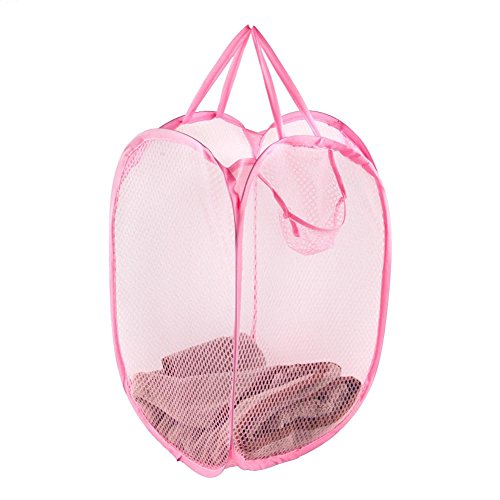 FitDio Pop Up Wire Free Mesh Hamper (8 Pack), Pink