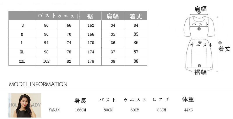上記理由での、ご返品ご交換は承る事が出来かねます。 予めご了承ください。素材 ポリエステル100%サイズS着丈84CM バスト86CM ウェスト66CM 肩幅34CMM着丈85CM バスト90CM ウェスト70CM 肩幅35CML着丈86CM バスト94CM ウェスト74CM 肩幅36CMXL着丈87CM バスト98CM ウェスト78CM 肩幅37CMXXL着丈88CM バスト102CM ウェスト82CM 肩幅38CM 注意事項◆他店舗でも取り扱いのある商品のため在庫がなくなってしまう場合がございます。◆記載サイズは、外寸で計測しております。 多少の誤差が生じますが、予めご了承下さい。皆様により良い商品をより安くご提供させて頂けますよう、ご注文完了後のご交換、キャンセル、及び不良品以外のご返品、ご交換はお受け致しておりません。 お申し込みの際は、サイズ、カラー等よくご確認の上、ご注文くださいますようお願い申し上げます。◆デジタルカメラでの撮影のため、画面上と実物では多少色具合が異なって見える場合もございます。 できるだけ商品に色を近づけてはいますが、ご了承ください。◆中国製。上記理由での、ご返品ご交換は承る事が出来かねます。 予めご了承ください。
