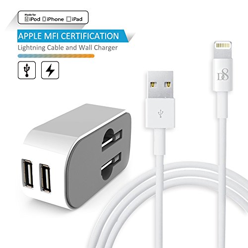 -. Title : [Apple MFI Certified] TJS® 2 in 1 Combo Charger Kits, 2.4A/5V Dual USB Ports Wall/Home Smart Charger and 3.2ft/1M 8-Pin Lightning to USB Sync/Charger Data Cable Charging Cord for Apple Devices