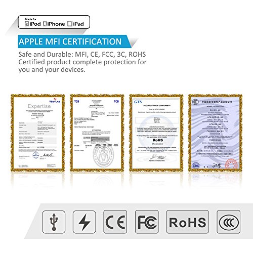 -. Feature : Apple MFi Certified Lightning to USB Cable (3 feet).: Complete charge and sync compatibility with iPhone 6/ 6 Plus, iPhone 6s/ 6s Plus ,iPhone 5s / 5c / 5, iPad Air / Air 2 / Pro, iPad mini / mini 2 / mini 3 /mini 4, iPad (4th generation), iPod nano (7th generation), and iPod touch (5th generation). / Port Wall Charger ,Input Voltage :AC 100~240V,Output Voltage & Current :5V & 2.4A charges your all kind favorite mobile devices. / Both Car & Wall Charger are built with Intelligent Circuit Design, protects against short circuiting, over-heating, over-currents, and over-charging. Charging stops when battery is full. / Safe and Durable: MFI, CE, FCC, 3C, ROHS Certified product complete protection for you and your devices.
