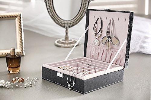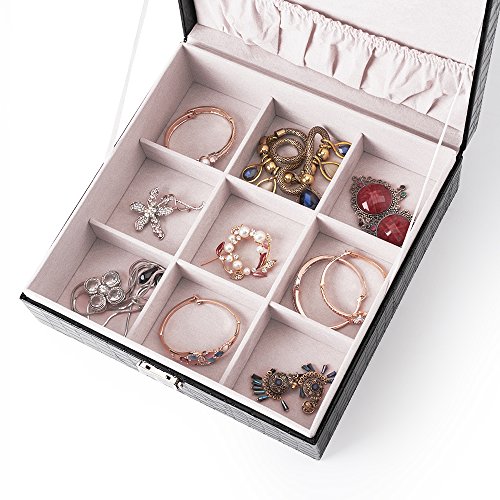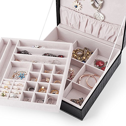 2 LAYERS & 28 COMPARTMENTS: The 1st layer is idal for ring, earrings, necklaces, charms. The second layer of 12 big compartments is ideal for bracelets. It will keep your jewelry well organized and easy to find. Soft lining and will protect your jewelry and accessories from dust and scratches.