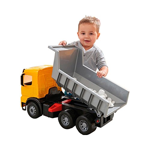 Sturdy, realistic dump truck for indoor and outdoor play.