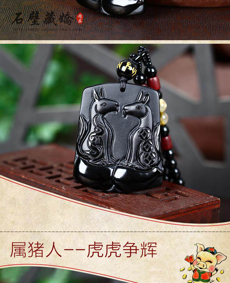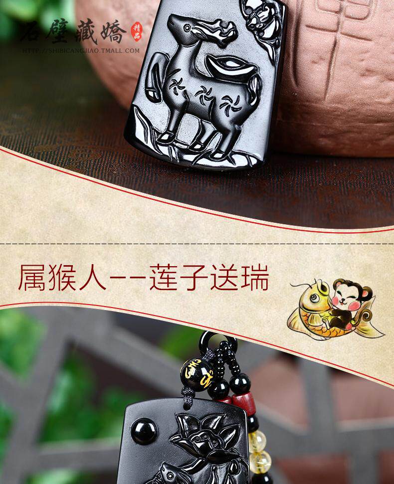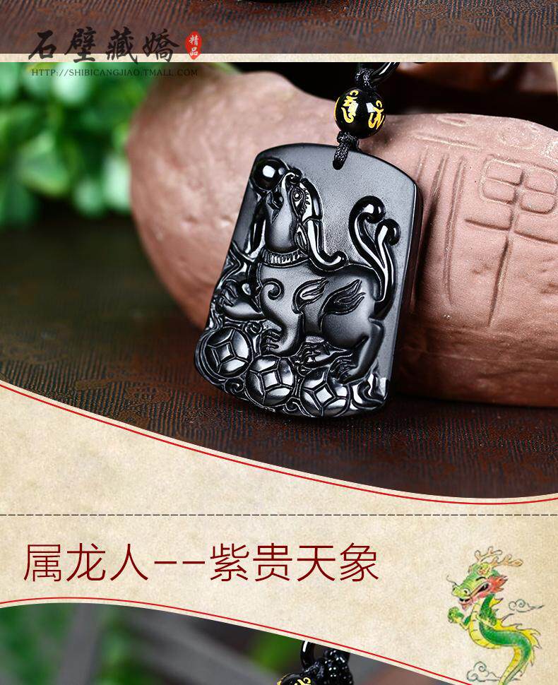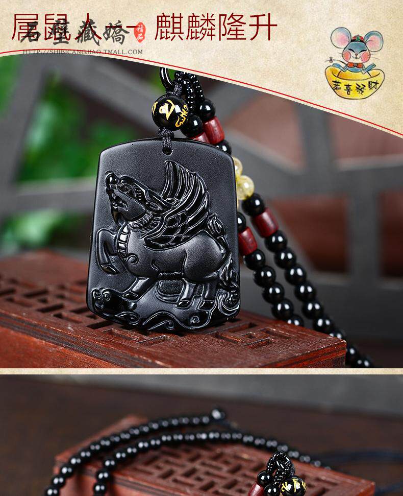 麒麟隆升黑曜石吊坠生肖属鼠狗年开运开光转运吉祥物
