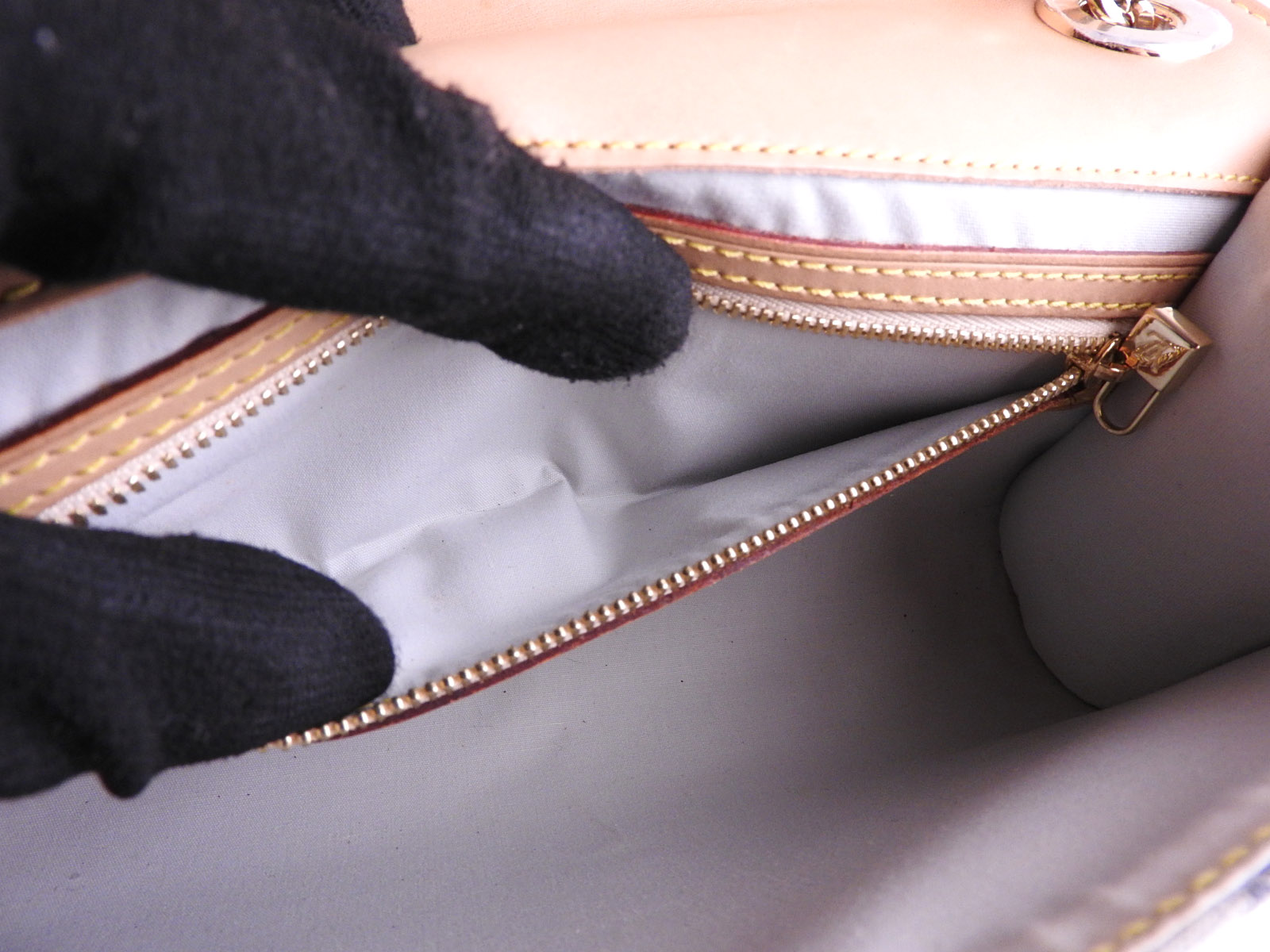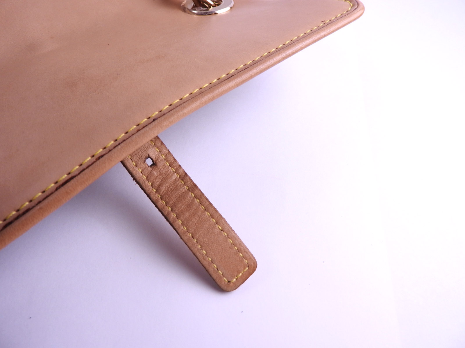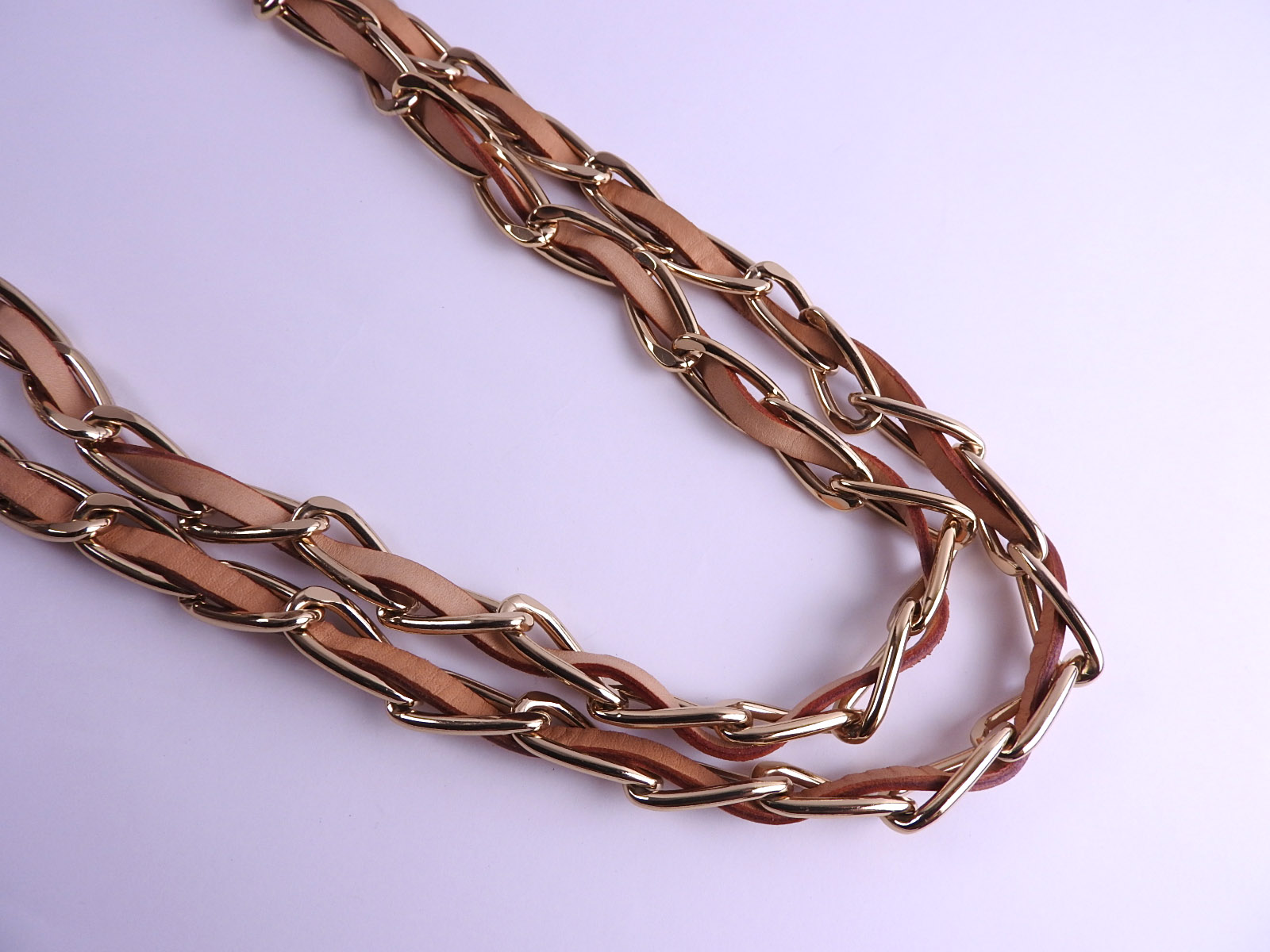 Chain: Barely used feeling. Tiny scratches. Leather: Barely used feeling. Good condition except for slight tanning. |
