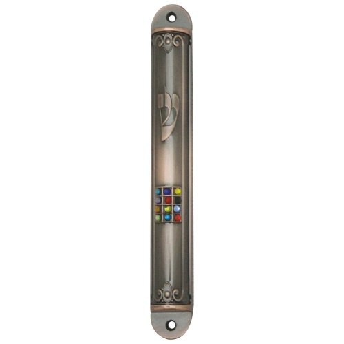 Copper Mezuzah Case with Colorful Gemstones "Hoshen" 12 Cm