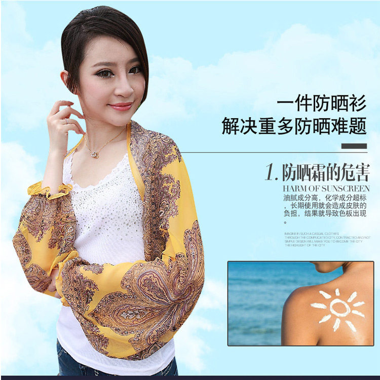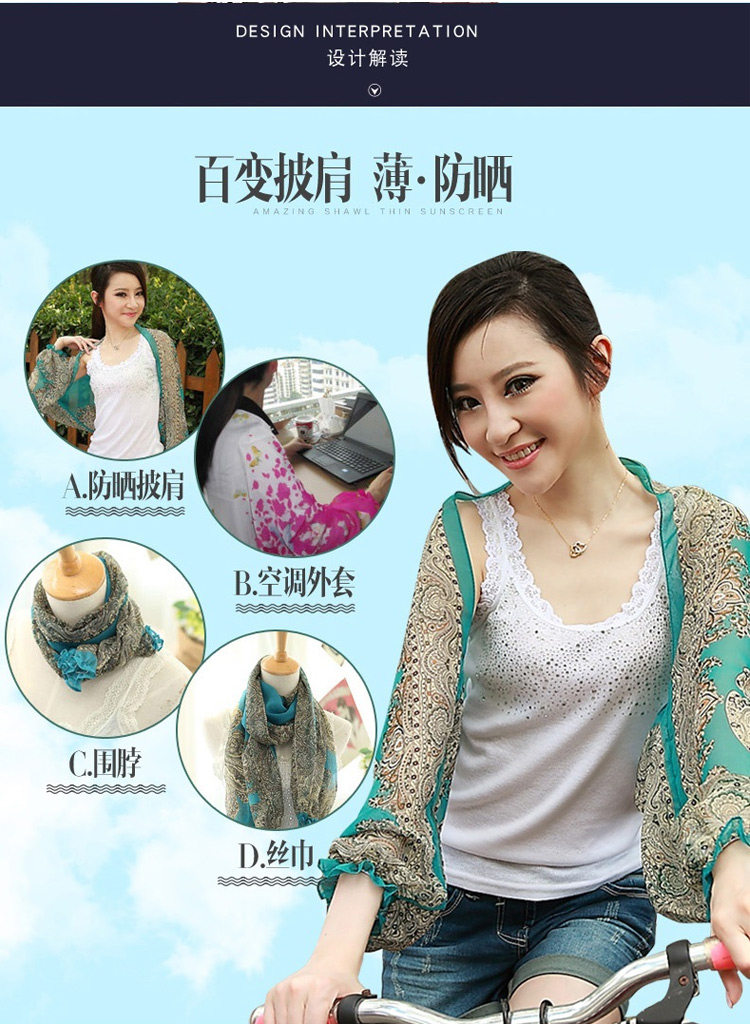 Women folk style fashion all-match multifunctional chiffon shirt printing sunscreen/Anti-UV Shawl