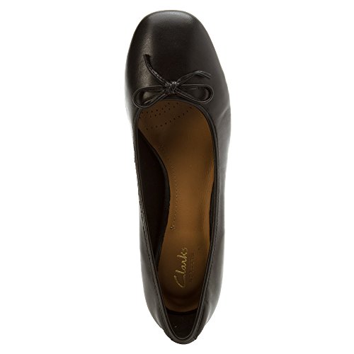 Product Description Pamper your foot with the Clarks Cala Lucky. The sleek leather upper offers a feminine touch with a dainty bow accent at the toe. The Clarks? CushionPlus dual-density footbed will ensure you make it through your day with comfort and support. 0