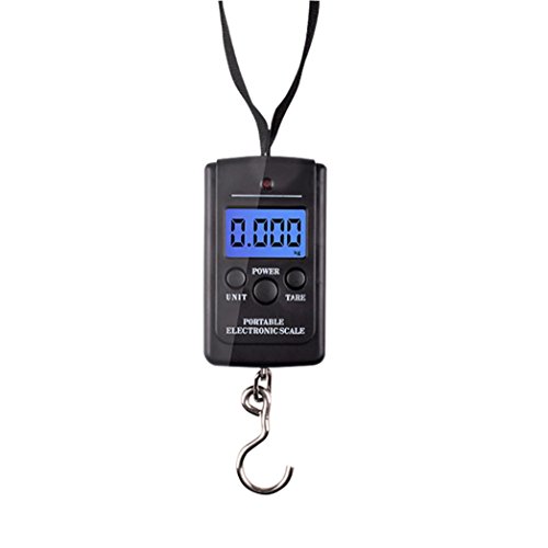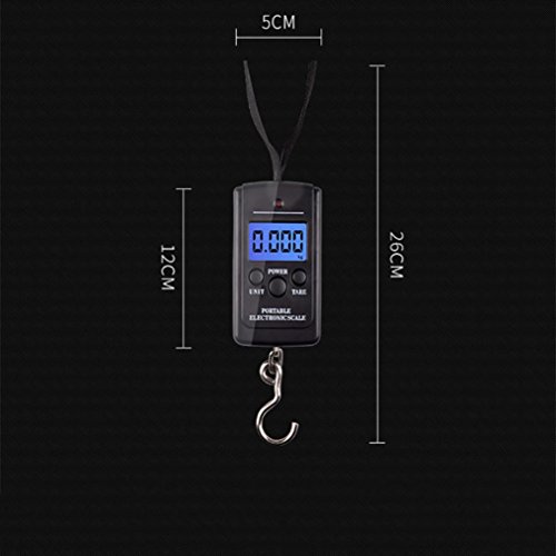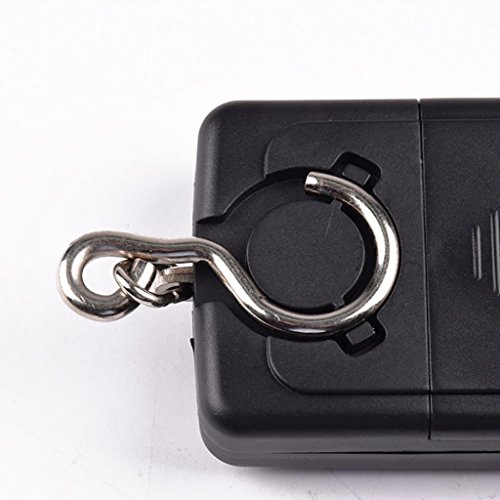 Studio : Sacow Publisher : Sacow Product Description 40kg x 5g Digital Scale for Fishing Luggage Steelyard Hanging Electronic Scale Specifications: Dimensions: 3.3" x 2..0" x0.8" (Depth) Material:ABS plastic body Capacity:40kg/88.18lb/800jin/1410.9 Double precision:0-10kg 5g,10-40kg 10g Units:kg/lb/jin/oz Auto Off:120 seconds Tare Range:Tare full capacity Display:LCD with backup light Power:AAA * 2 (Excluded) This mini digital portable scale includes the following features: 40kg capacity and 10g readability LCD display with backup light Tare function Auto power off low Power alarm Overload indicator Air temperature measuring. Press "unit "lasting for 2 seconds,it will show the enviroment temperature.Press"ON/OFF"to exit the function. Multiple weighing modes: kg lb jin oz and discrete wavelet transform. Backlight Function.the backlight will extinguish if the scale receive not any operation or the weight on the hook is stable over 5 seconds. Weight value lock.Press "TARE" for about 2 seconds to turn on/off the locking function, press "ON/OFF" to unlock Easy to carry it in a pocket or handbag for weighting on travel Items Included: One 40kg x 5g luggage Scale Users manual