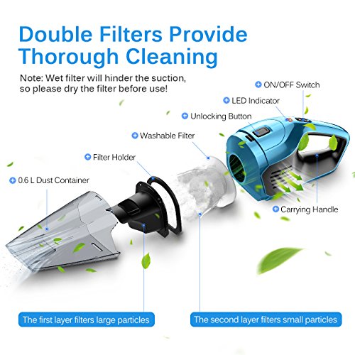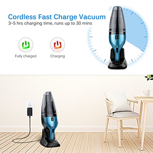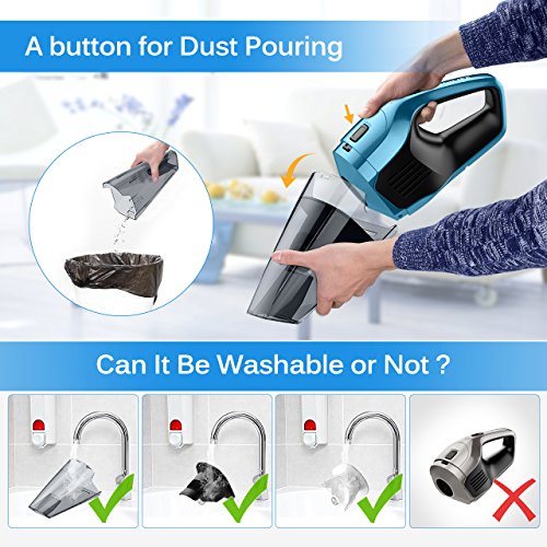 This portable vacuum cleaner boasts a compact size and a cordless design, so you can carry it around your house without any inconvenience. Easily tackle unexpected messes with this hand vacuum, perfect for small apartments, dorms and cars. And, a special designed handle fits perfectly in the palm of your hand while an easy empty dirt cup makes it even more convenient to get the job done quicker.