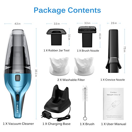 【POWERFUL & CYCLONIC SUCTION】With battery peaks at 14.8 volts and 100W motor, among the higher voltages of any handheld vacuum, Holife vac has enough suction to pick up Cheerios, road grit, and other common debris pretty quickly which makes it the strongest cleaner and the best value in its class. Please note: Turn off the machine when charging