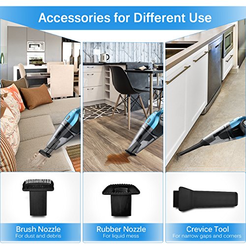 This handheld vacuum cleaner comes with two more nozzles that ensure efficient clean-ups in the narrowest places. Also, there's a small brush on the tip of the nozzle. Therefore, this small cordless handheld vacuum cleaner ensures the efficient cleaning of stairs, floors, carpets, shelves, and so on.