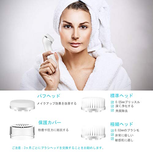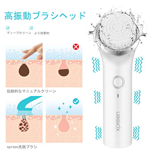 「xpreen 電動洗顔ブラシ+電動パフ USB充電式」は、高周波回転と極細繊維ブラシがお肌の奥にある余分な皮脂、汚れ、角栓、黒ずみ、古い角質やメイクなどをクレンジングします。そして、にきびを防ぎてできます。標準ブラシの直径は0.05ミリメートルです。極細ブラシの先端の直径はわずか0.02ミリメートルです。 毛穴より細かく、洗浄能力は通常の手洗いより数倍優れています。ブラシ用の毛も超ソフト、羽がお肌を触れるのと同じ柔らかいです。常に爽やかと清潔なお肌にキープし、スベスベ透明肌はまるで赤ちゃんのように♪メイクアップをきれいにパフヘッド付きます。毎日の深いクレンジングと穏やかな洗い感じのために、2段階のスピードが調整可能です。毎日ご使用いただければ、お肌にガンコに付着している有害物もスッキリオフになります!マッサージこうかもあり、血行の流れを改善し、活力あるイキイキお肌になる可能です!塞がった毛穴えを開け、美容液も吸収やすくなります。