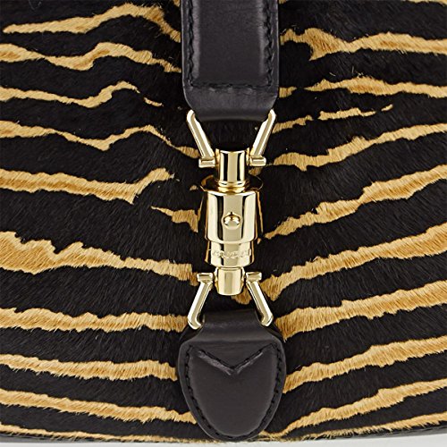 -. Brand : Gucci -. Color : Zebra -. Department : womens -. EAN : 0714119749230 -. Feature : Gucci Zebra Print Pony Hair 'New Jackie' Shoulder Bag 277520 / Zebra Print Pony Hair / Dimensions: 14" x 9" down the center x 3" / Made in Italy / All authenticity cards included -. Model : 277520 -. ProductGroup : Shoes -. ProductTypeName : HANDBAG -. Size : medium -. Title : Gucci Zebra Print Pony Hair 'New Jackie' Shoulder Bag 277520 -. UPC : 714119749230 Gucci Zebra Print Pony Hair 'New Jackie' Shoulder Bag. Features zebra print pony hair, black leather trim and light gold hardware including piston closure. Canvas lining with zippered pocket and two flat pocket. Made in Italy. Measures 14" x 9" down the center x 3".