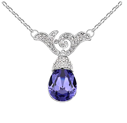 -. Title : Swarovski Elements Crystal Lotus Purple Waterdrop with Flower Pendant White Gold Plated Chain Necklace
