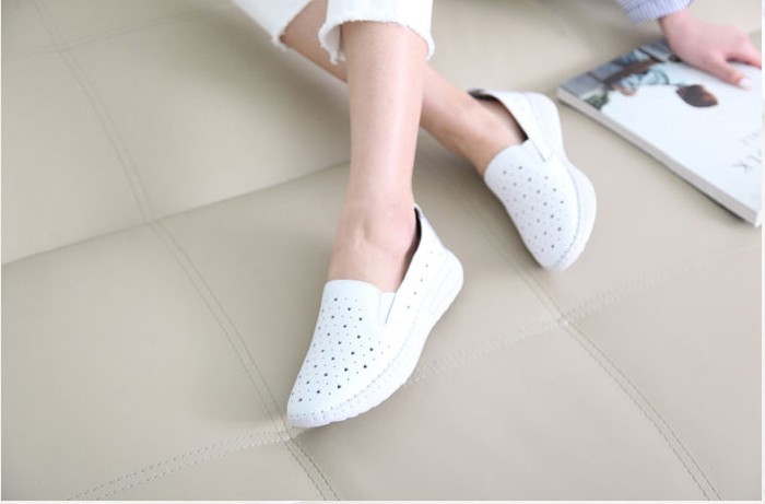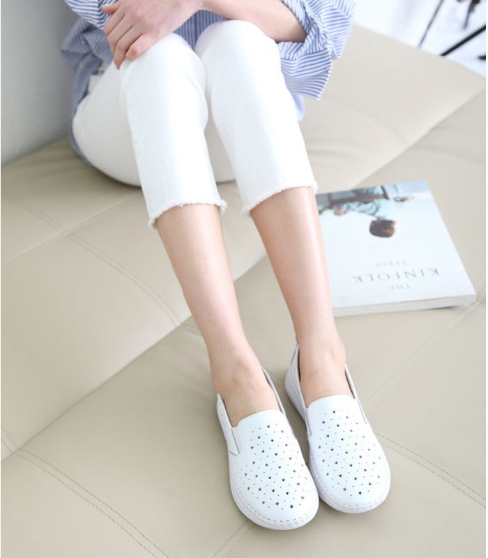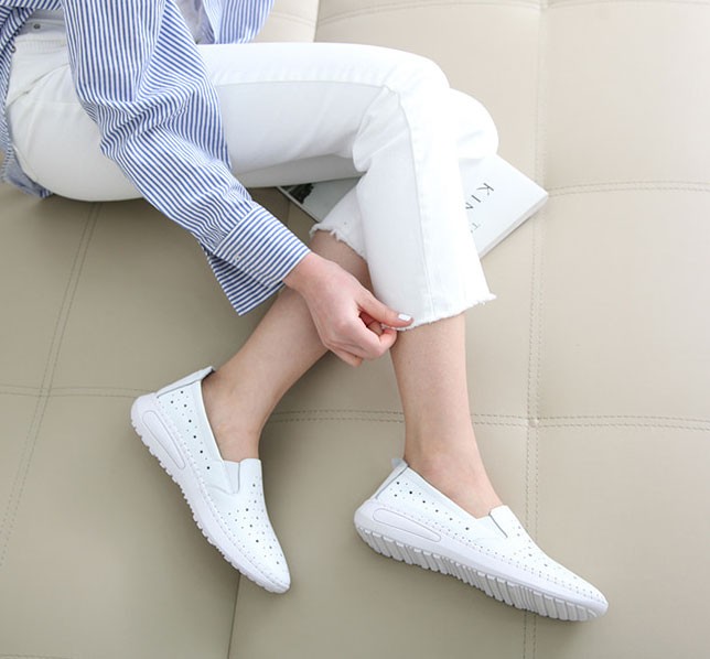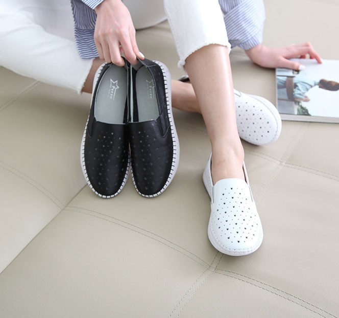 商品名:スリッポン レディース スニーカー 本革 レザー 2018 春 ファッション 靴 婦人靴