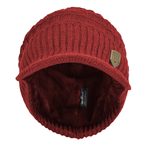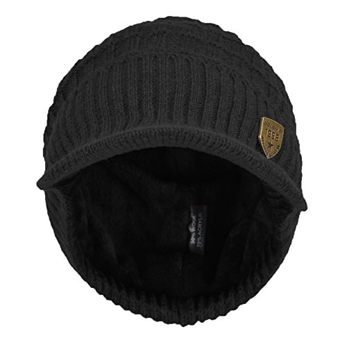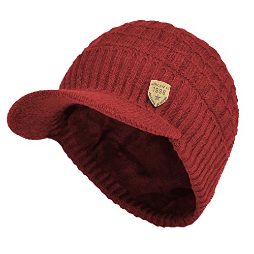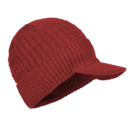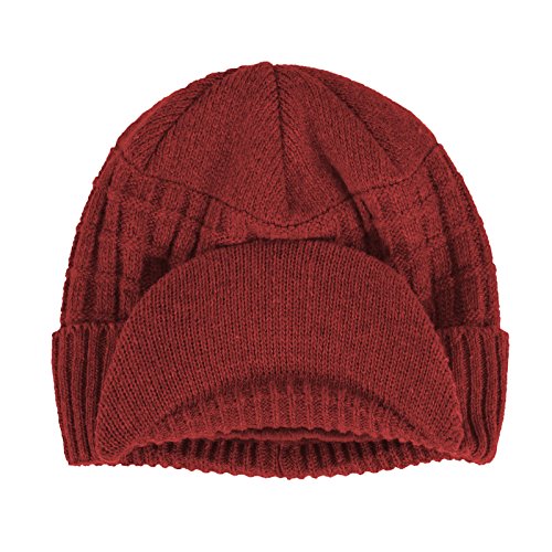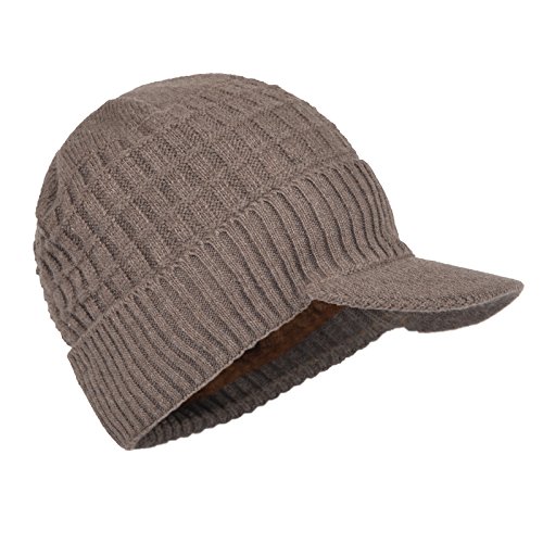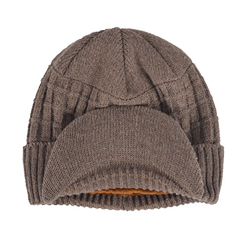 Sports Winter Outdoor Knit Visor Hat Billed Beanie with Brim Warm wit Fleece Lined for Men and Women