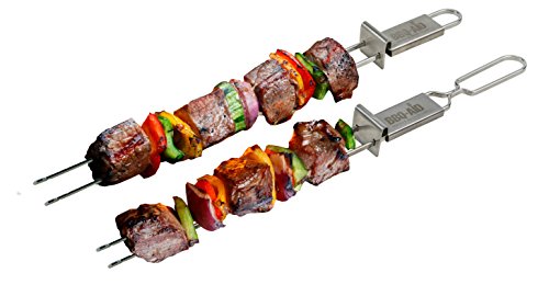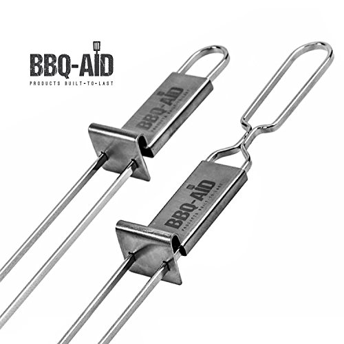 - KEEP FOOD ON THE SKEWER – Our double pronged and flat design will keep your food on the skewers. If your tired of having skewers where the food is always falling off, you must own the BBQ- Aid Skewers!