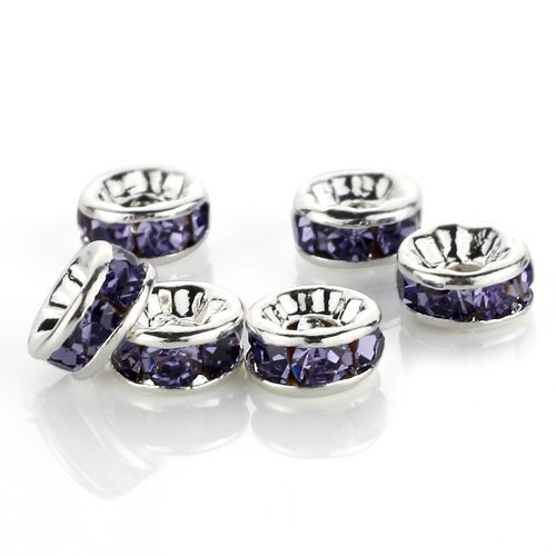 100 Pcs Swarovski Crystal Rondelle Spacer Bead Silver Plated 6mm Purple Tanzanite (539)