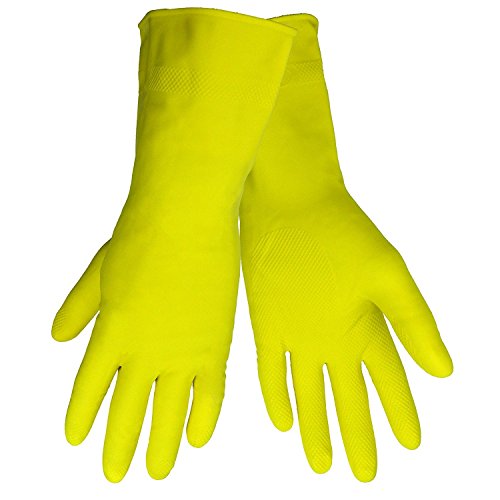 Global Glove 150F Flock Lined Latex Premium Grade Diamond Pattern Glove with Rolled Cuff and Chlorinated Liner, Chemical Resistant, Yellow , Pack of 12 (Small)